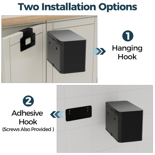 Stainless Steel Hanging Trash Can with Lid and Inner Bucket, 2 Gallon Kitchen Compost Bin for Counter Top, Under Sink or Wall Mount, Small Garbage Can for Cupboard/Bathroom/Bedroom/RV, Black