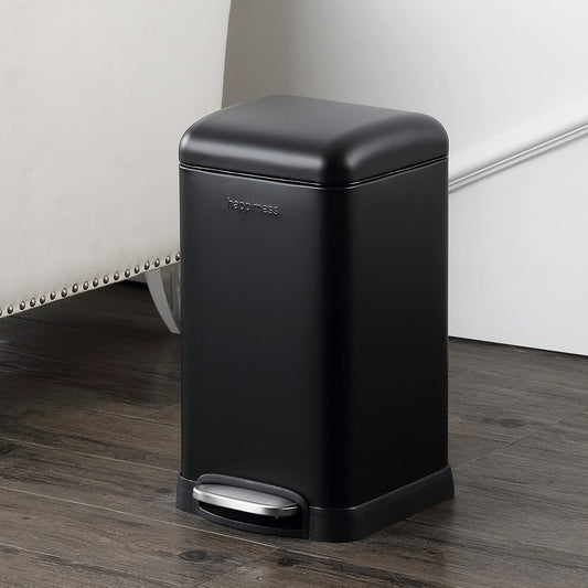 happimess HPM1012B Betty Retro Mini 3.2-Gallon Step-Open Trash Can with Soft-Close Lid, Modern, Minimalistic, Fingerprint Proof for Home, Kitchen, Laundry Room, Office, Bedroom, Bathroom, Black