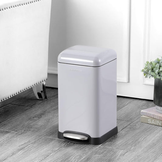 happimess HPM1012E Betty Retro Mini 3.2-Gallon Step-Open Trash Can, Fingerprint Resistant, Modern, Minimalistic for Home, Kitchen, Laundry Room, Office, Bedroom, Bathroom, Fog Gray