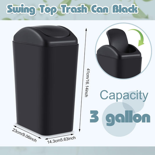 4.5 Gallon Swing Top Trash Bin, Plastic Garbage Can with Lid, Black, 3 Pack