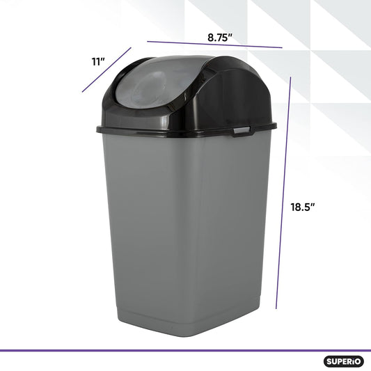 Superio Kitchen Trash Can 13 Gallon with Swing Lid, Plastic Tall Garbage Can Outdoor and Indoor, Large 62 Qt Recycle Bin and Waste Basket for Home, Office, Garage, Patio, Restaraunt (Grey/Black)