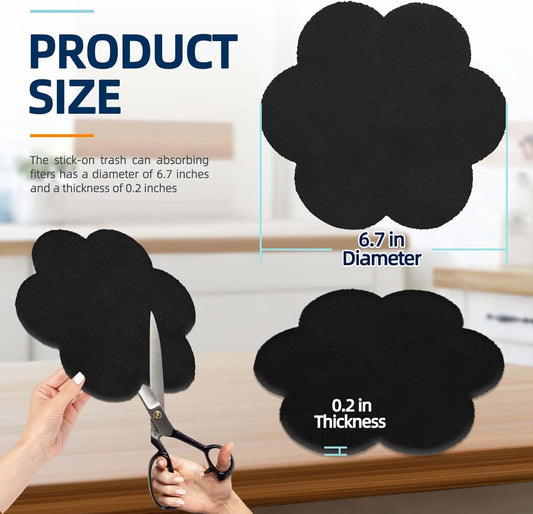 Trash Can Odor Absorbing Filters: Activated Charcoal Deodorizer Sheet for Kitchen Trash Can, Compost Bin, Diaper Pail, Garbage Can - Air Freshener - 12 Replacement 6.7" Flower Shape