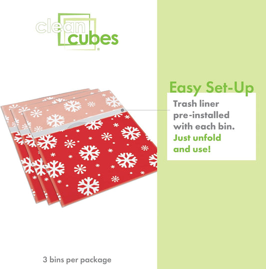 13 Gallon Disposable Pop-Up Trash Cans (3-Pack) with Fitted Bags – Foldable Garbage & Recycling Bins for Parties, Events & Kitchen (Snowflake, 17" H x 13.5" W x 10" D)