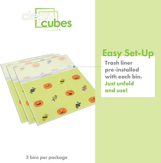 13 Gallon Disposable Pop-Up Trash Cans (3-Pack) with Fitted Bags – Foldable Garbage & Recycling Bins for Parties, Events & Kitchen (Halloween, 17" H x 13.5" W x 10" D)