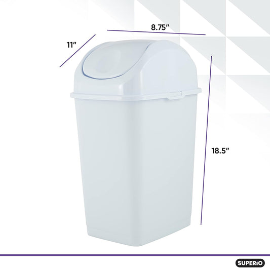 Superio Medium Trash Can with Lid 4.5 Gallon Plastic Swing Top Garbage Can Slim Waste Bin for Under Sink/Cabinet, Laundry Room, Kitchen, Office, Bedroom, Bathroom, College Dorm, 18 Qt, White