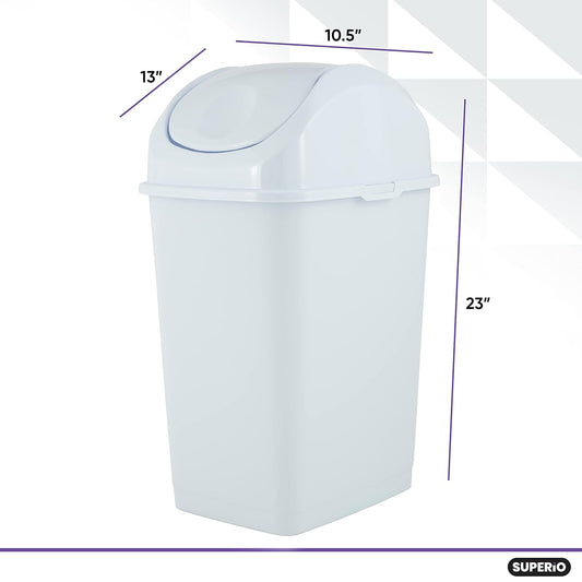 Superio Kitchen Trash Can 13 Gallon with Swing Lid, Plastic Tall Garbage Can Outdoor and Indoor, Large 52 Qt Recycle Bin and Waste Basket for Home, Office, Garage, Patio, Restaurant (White)