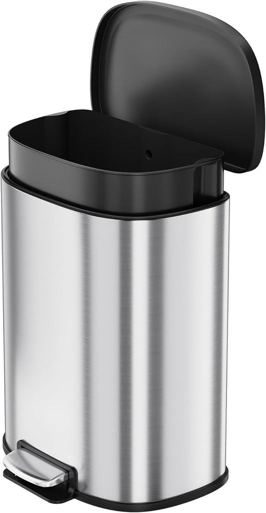 13.2 Gal/50L D-Shape Trash Can, Step-On Stainless Steel Garbage Can, Soft-Close Lid, Anti-Fingerprint Surface, Recycling Bin with Removable Inner Basket for Kitchen Dining Room