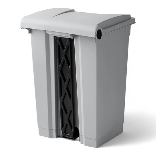 PRO&Family Step-On Trash Can with Lid, Plastic Waste Bin, Foot Pedal Operation (Gray, 12 Gallon)