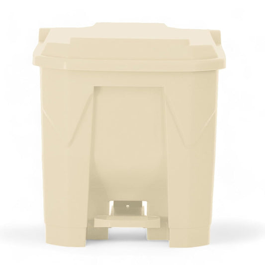 PRO&Family Step-On Trash Can with Lid, Plastic Waste Bin, Foot Pedal Operation (Biege, 8 Gallon)