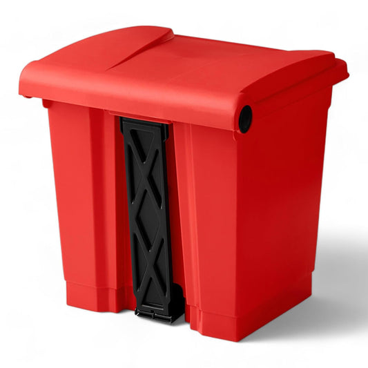 PRO&Family Step-On Trash Can with Lid, Plastic Waste Bin, Foot Pedal Operation (Red, 8 Gallon)
