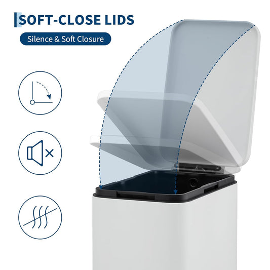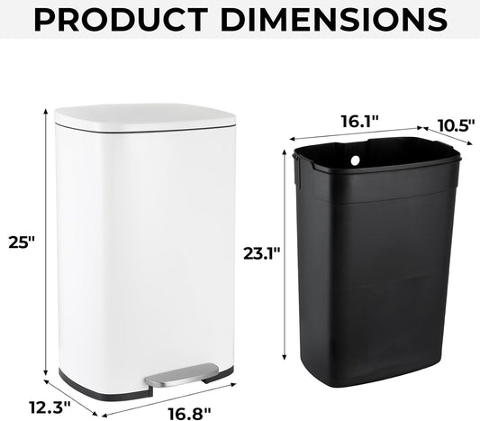 Garvee 13 Gallon Kitchen Trash Can, Stainless Steel Step Garbage Bin with Soft-Close Lid & Removable Bucket, Fingerprint Proof, Slim for Narrow Spaces, Bathroom or Office (White+Silver, 13 Gallon)