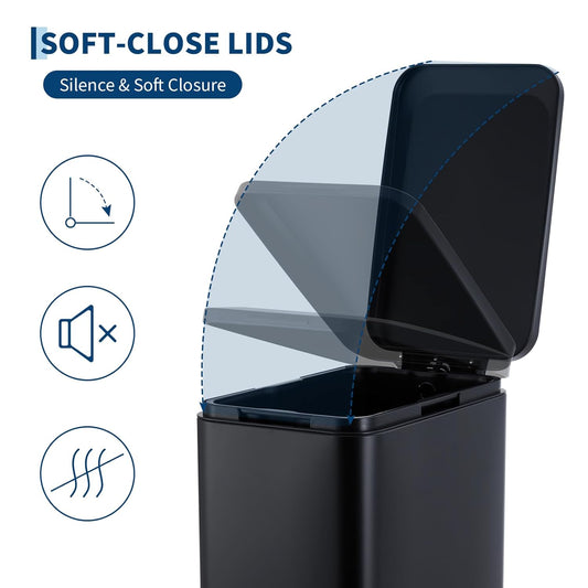 Garvee 13 Gallon Kitchen Trash Can, Stainless Steel Step Garbage Bin with Soft-Close Lid & Removable Bucket, Fingerprint Proof, Slim for Narrow Spaces, Bathroom or Office (Black+Silver, 13 Gallon)