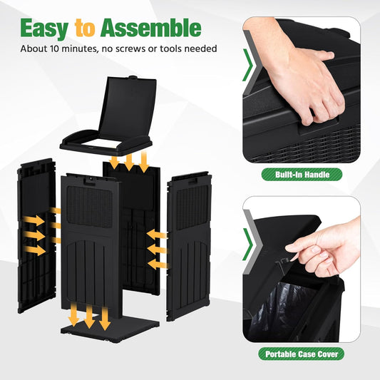 Collapsible Trash Bag Holder Portable Garbage Bin Holder Stand for Kitchen Outside 13 Gallon Plastic Outdoor Trash Can with Lid for Parties and Camping, Black