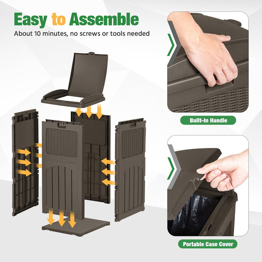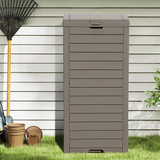 Devoko 33 Gallon Outdoor Trash Can, Hideaway Garbage Bins with Tiered Lid, Waterproof Resin Outside Waste Bins for Patio, Outside Pool, Backyard and Deck(1, Deep Brown)