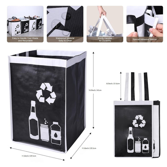 Recycle Waste Bag for Kitchen Home- Indoor Recycling Bins Trash Sorting Organizer, Reusable and Waterproof, 4 Pack