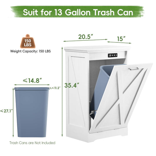 Betterhood TOLEAD Tilt Out Trash Can Cabinet, Hidden Trash Bin with Deodorizing & Negative Ion System, Pet-Proof Kitchen Waste Cabinet for Kitchen, Dining Room, Living Room (White, 2 * 13 Gallons)