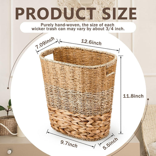 2 Pcs Wicker Trash Can with 50 Small Trash Bag Wicker Waste Woven Basket with Handles Clear Multi Use Garbage Bags for Bathroom Kitchen Bedroom(Various Materials,Classic Style)