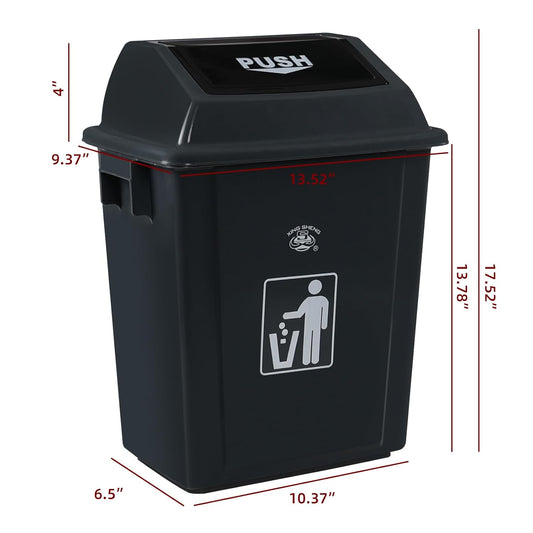 Yuright 40 L / 10 Gallon Swing Lid Trash Bins, 4 Pack Large Plastic Garbage Cans, Black