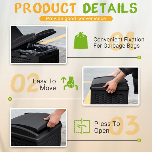 Outdoor Trash Can, Waterproof Resin Garbage Can Indoor and Outdoor Use, Durable & Weather-Resistant Commercial Garbage Can, Outside Trash Bin for Patio, Kitchen