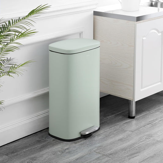 happimess HPM1011H Curtis 8-Gallon Step-Open Trash Can, Fingerprint Resistant, Modern, Minimalistic for Home, Kitchen, Laundry Room, Office, Bedroom, Bathroom, Pistachio Gelato
