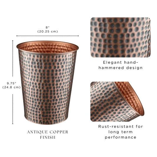 Monarch Abode Handcrafted Metal Wastebasket Trash Can for Home Office Bedroom, Decorative Wastebasket, Modern Bathroom Decor, Durable, Hand Hammered, Antique Copper Finish