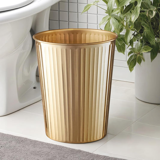 Monarch Abode Brushed Gold Handcrafted Ridge Embossed Metal Wastebasket for Home Office, Decorative Waste Basket, Modern Bathroom Garbage Can, Durable & Decorative Trash Bin, Brushed Gold Trash Can