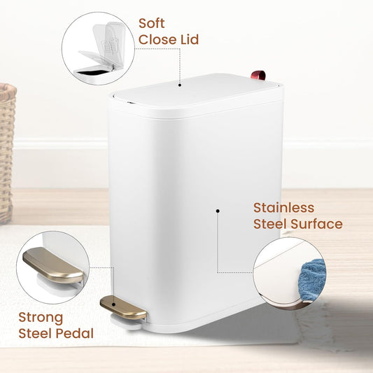 BETHEBEST Bathroom Trash Can with Lid,Stainless Steel Garbage Can with Removable Inner Bucket,Soft Close,Step Pedal,15 Liter/4 Gallon Trash Can for Bathroom,Bedroom,Kicthen,Office(White)