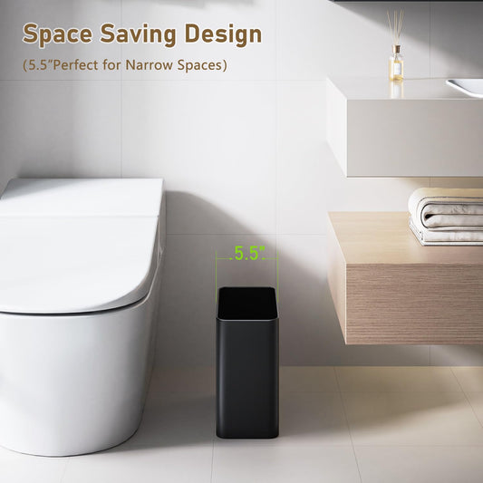 Small Bathroom Trash Can 2.4 Gallon Wastebasket, Slim Metal Garbage Can Matte Black Stainless Steel Trash Bin for Bedroom,Office,Kitchen,Toilet, rv, Near Desk, Under Sink