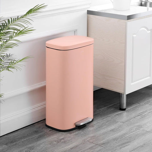 happimess HPM1011F Curtis 8-Gallon Step-Open Trash Can, Fingerprint Resistant, Modern, Minimalistic for Home, Kitchen, Laundry Room, Office, Bedroom, Bathroom, Flamingo Pink