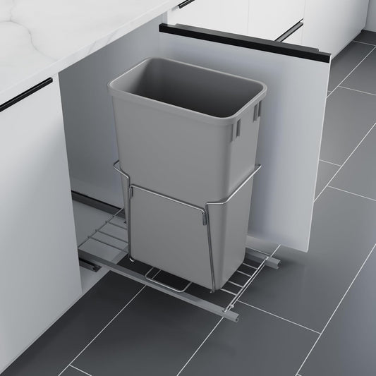Dowell B18 Aluminum Base Wastebasket Pullout with Door Mount and Two 35Qt/9Gal Plastic Bins (4012 0218+35x2)