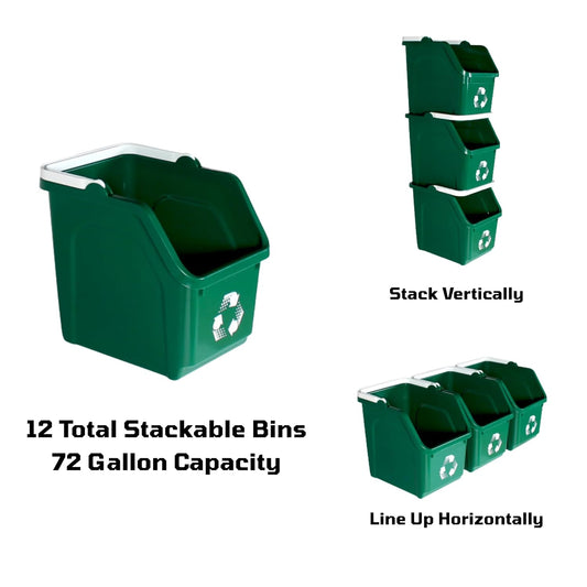 6 Gallon Stackable Recycling Bins for Homes, Garages, Offices Made of 100% Recycled Plastic - (Green, 12 Pack)