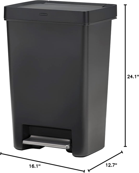 Rubbermaid Premier Series II Step-On Trash Can for Home and Kitchen, with Lid Lock and Slow Close, 12.4 Gallon, Charcoal, for Home/Kitchen/Garage/Apartment/Office