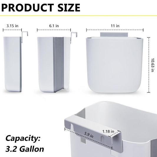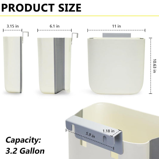 Soddeph 3.2 Gallon Foldable Hanging Trash Can for Cabinet Door,Kitchen Compost Bin,Wall-Mounted Plastic Garbage Can for Countertop or Under Sink, Bathroom and RV,No Lid (White)