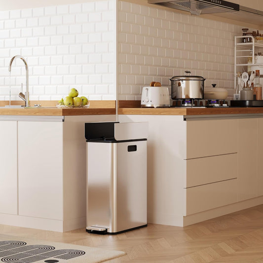 TrailBlaze 8Gallon / 30L Kitchen Trash Can, Stainless Steel Rectangular Pedal Recycle Bin with Soft-Close Lid, Removable Inner Bucket, Fingerprint-Proof, Step Trash Can for Home, Kitchen