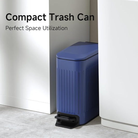 TIPGO Slim Bathroom Trash Can with Lid Soft Close, Step Pedal, 6 Liter / 1.6 Gallon Stainless Steel Trash Bin, Small Garbage Cans for Bedroom, Office, Kitchen (Blue)