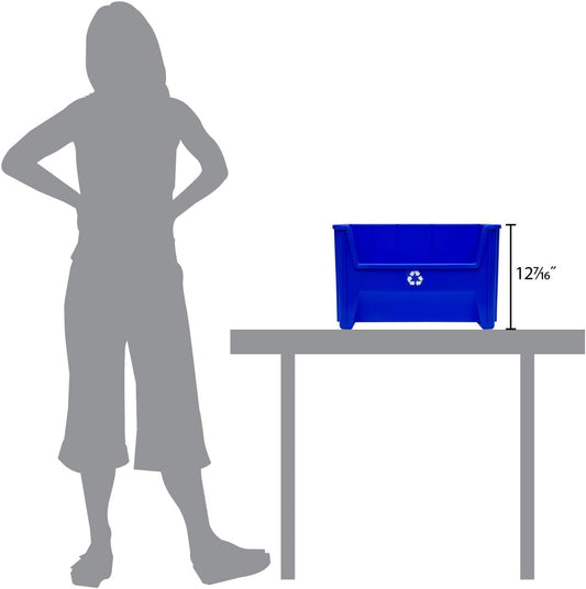 Commercial Industrial Heavy Duty Stackable Open-Front Recycling Bin Box Containers, 7 Gallon, 4 Pack, Blue