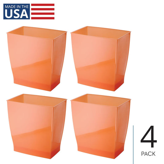 iDesign Small Rectangular Bathroom Trash Cans - Set of 4 - Tango Orange, Made in USA