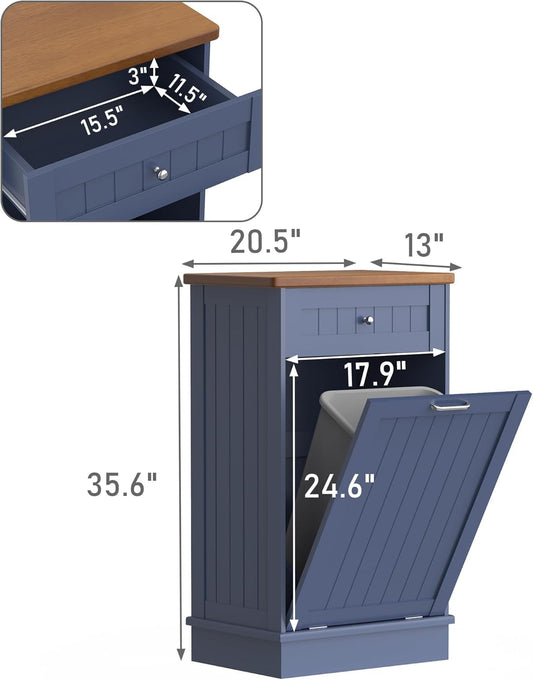 Betterhood Tilt Out Trash Cabinet 10 Gallon Wooden Free Standing Laundry Sorter Cabinet,Recycling Cabinet with Hideaway Drawer,Tilt Out Trash Cabinet Can Bin Kitchen (Single Light Blue, Single Dooor)