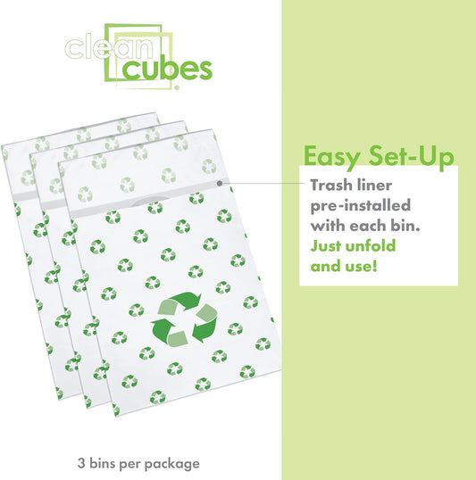 30 Gallon Disposable Pop-Up Trash Cans (3-Pack) with Fitted Bags – Foldable Garbage & Recycling Bins for Parties, Events & Kitchen (Recycle, 30" H x 14" W x 17" D)