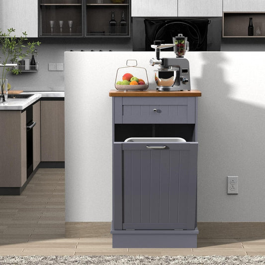 Betterhood Tilt Out Trash Cabinet 10 Gallon Wooden Free Standing Laundry Sorter Cabine,Recycling Cabine with Hideaway Drawer,Tilt Out Trash Cabinet Can Bin Kitchen