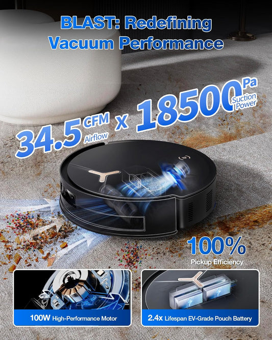 Yeedi C12 Plus Robot Vacuum and Mop, 8000Pa Strong Suction, 7-Week Dust Storage, Bagless Dust Bin, PureCyclone Tech, ZeroTangle Brush, White