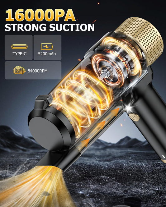 AHNR Handheld Car Vacuum Cleaner Cordless with 16000PA Powerful Suction, 4-in-1 Portable Mini Vacuum Cleaner & Air Duster with Multi-Accessories, Hand Held Vacuum Cordless Rechargeable for Car Home