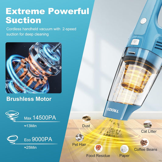 Handheld Vacuum Cordless, 14500PA Powerful Suction Hand Held Vacuum Cleaner with Brushless Motor, Rechargeable and Portable Car Vacuum for Home Office Car Pet