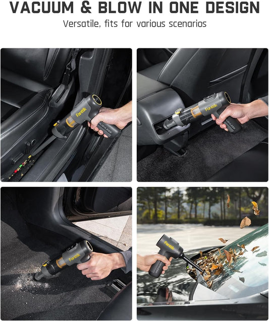 Fanttik Slim V9 Mix Car Vacuum, 4 in 1 Handheld Air Duster, 12000PA Suction Power with Smart LED Display, Cordless Portable Mini Keyboard Vacuum for Car Interior, Office Desk