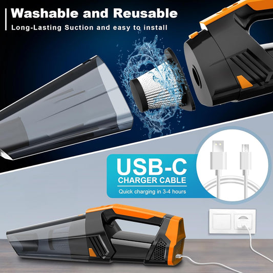 Handheld Vacuum Cordless Car Vacuum Portable with LED Light, High Power Suction, Lightweight Rechargeable Hand Vacuum, Hand Held Vacuum Cleaner for Car Home Office, Pet Hair, BlackOrange