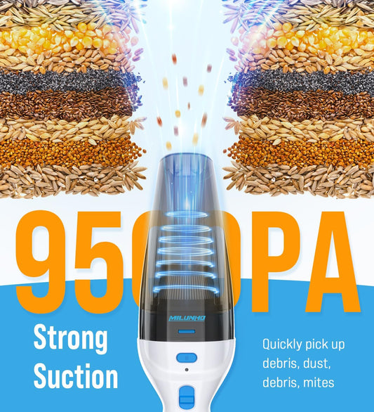 Powerful Handheld Vacuum Cordless, 9500PA Rechargeable Car Vacuum Portable Cordless, Lightweight & Portable Mini Handheld Vacuum Cleaner with Large-Capacity Battery for Car/Home/Pet