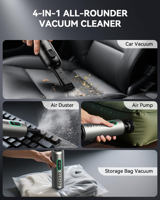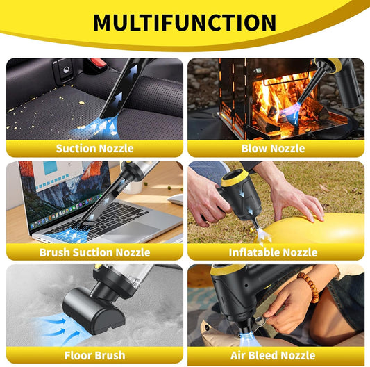 Cordless Handheld Vacuum & Air Duster - 12000Pa Strong Suction, 2 Speeds, Brushless Motor, LED Light, Multi-Nozzles 4-in-1 - Portable for Car, Home, Outdoor, Pet Hair
