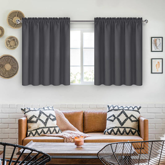 DWCN Short Blackout Curtains 36 inches Length 2 Panels Set, Half Window Rod Pocket Privacy Curtain Tiers for Kitchen, Room Darkening Curtains for Bathroom Shades (W60 x L36 Inch, Dark Grey)