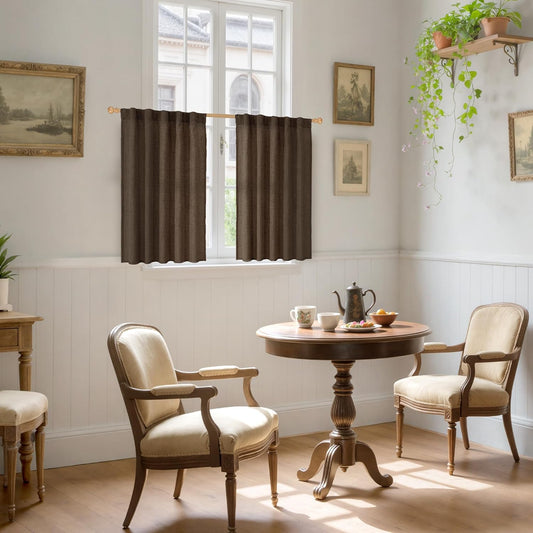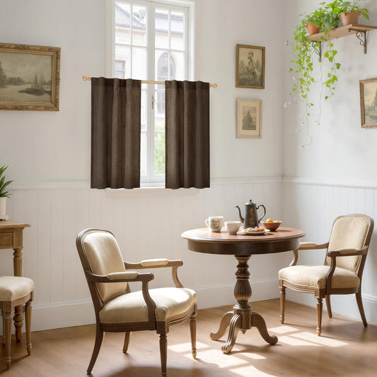 YoungsTex Brown Linen Curtains 40 Inch Length for Small Window, Chocolate Light Filtering Drapes with Rod Pocket Back Tab for Bathroom Kitchen Window, 30 x 40 Inch, 2 Panels