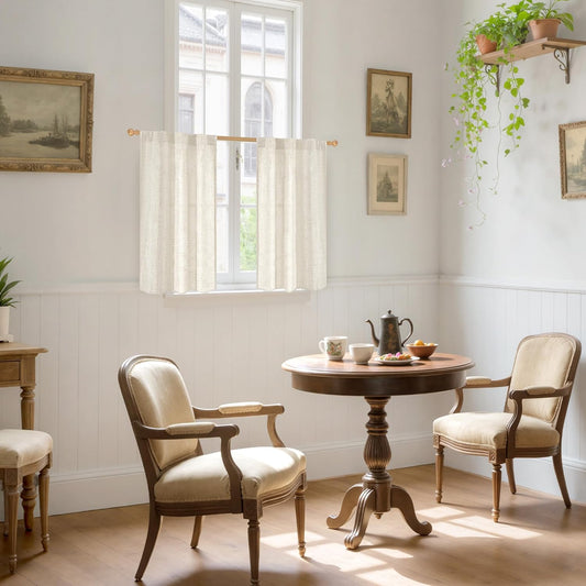 YoungsTex Cafe Linen Curtains 40 Inches Long for Kitchen Window Over Sink - Short Semi Sheer Drapes with Rod Pocket Back Tab Rustic Light Filtering for Front Door Bathroom, 2 Panels, 30 X 40 Inch